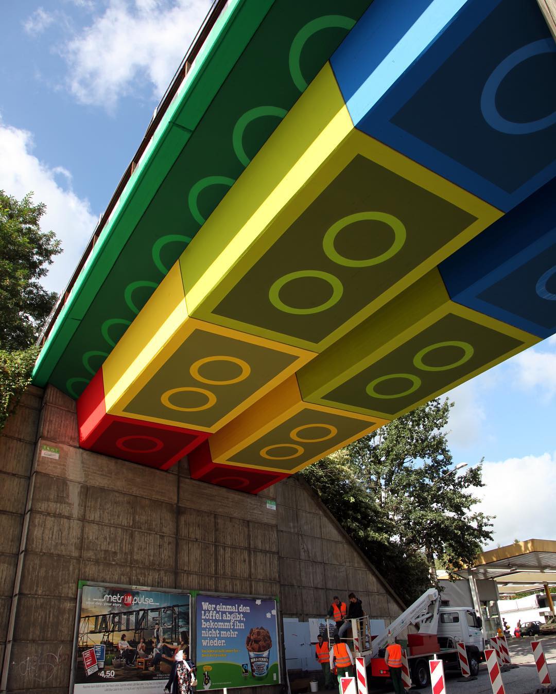 原本灰色沒溫度的橋樑秒變成漂亮的樂高世界,藝術家太有創意啦!!
