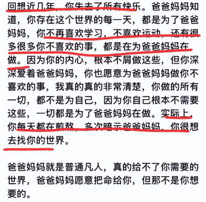 這件事令人痛心疾首,也為廣大家長敲響警鐘:對孩子的期望應適度,更要關注孩子的心理健康,切勿強硬逼迫孩子前行!