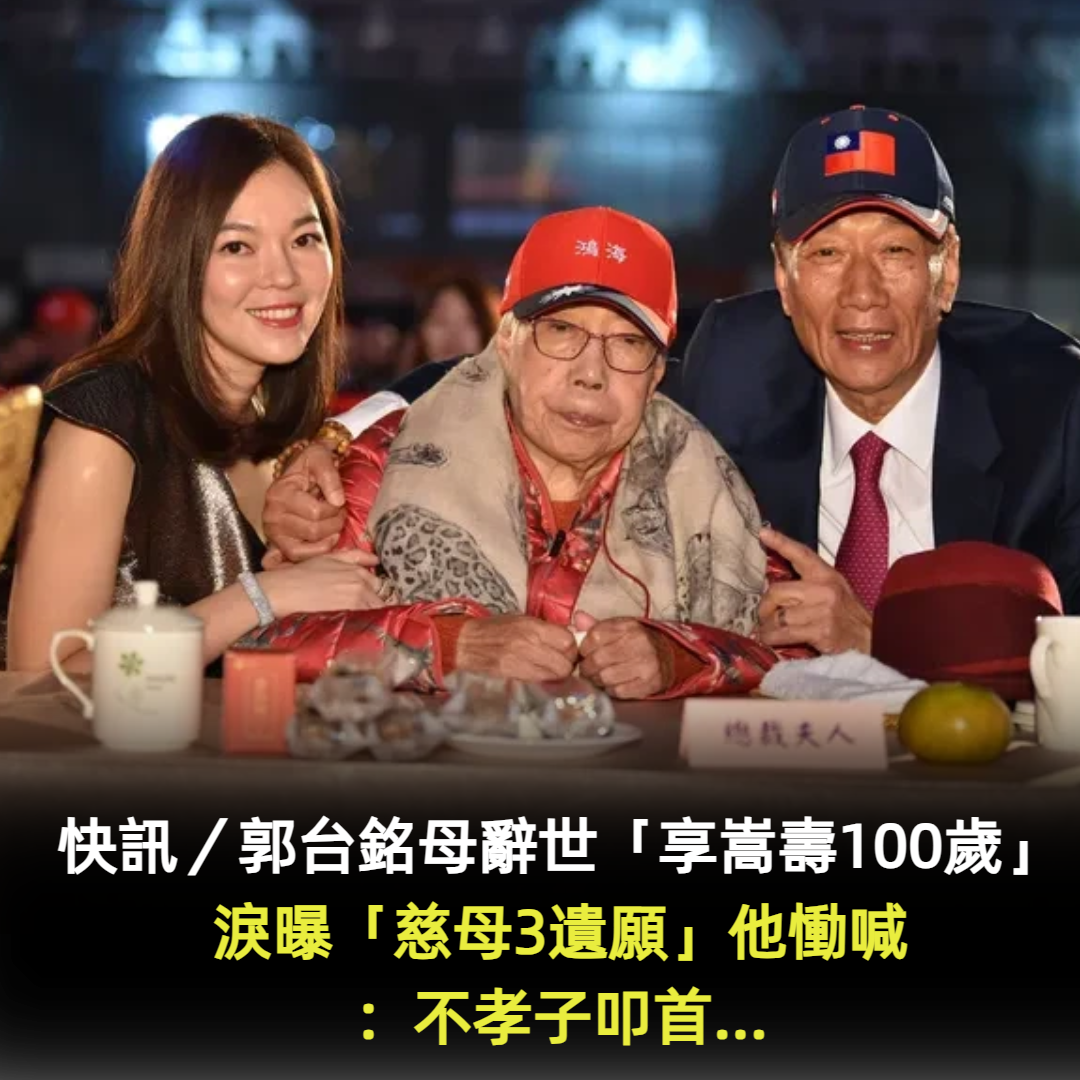 快訊/郭台銘母辭世「享嵩壽100歲」!當年創立鴻海「慈母標會籌資金」 郭台銘慟曝「媽媽3遺願」