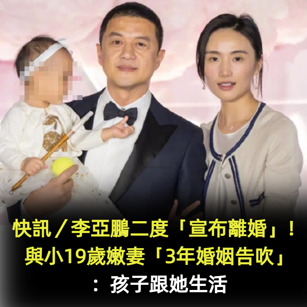 快訊/李亞鵬二度「宣布離婚」!與小19歲嫩妻「3年婚姻告吹」:孩子跟她生活