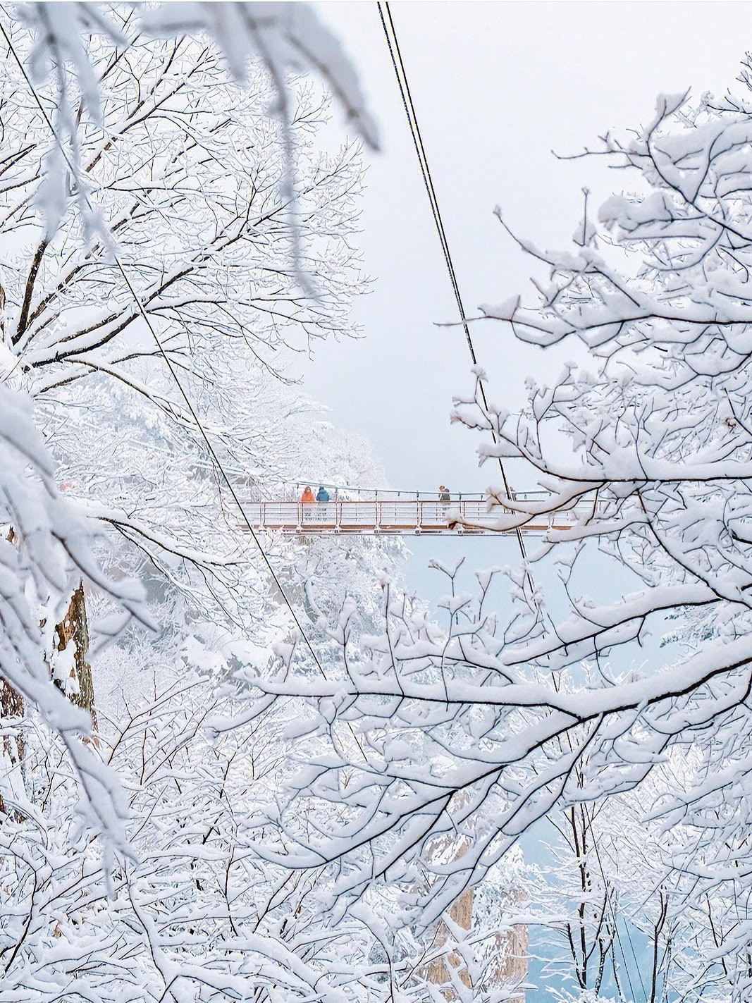 這裡最知名的就是雲橋和懸索樓梯啦!據說雲橋長50m且高81m,橫跨在兩個岩層之間看上去相當驚險,尤其在白雪覆蓋整片山林之下,宛如來到一個深山中的精靈世界,真的好驚奇。