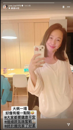 而最近兩人正積極修復感情,剛歷經婚變風波的六月卻突然自曝:「大病一場」並發出自己消瘦一大圈的近況,讓粉絲都十分擔心。根據《自由娛樂》報導,六月最近突然在社群上透露自己病了,並曬出自拍照:「好像有瘦一點點」打扮居家的她明顯消瘦一圈,雙頰凹陷不少顯得憔悴許多。