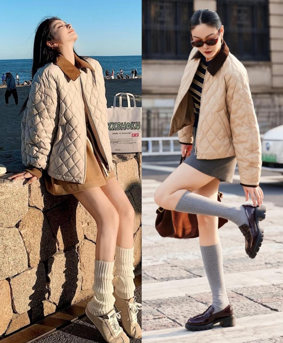 ②奶奶棉服搭配裙子,短裙俏皮,長裙文藝